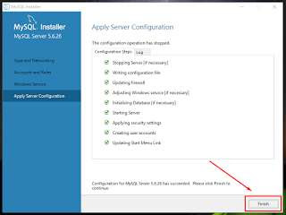 Maka hasilnya bisa dilihat pada gambar di atas, tunggu proses hingga selesai. Jika sudah, klik Finish dan selamat Anda telah berhasil memasang MySQL Server serta mengkonfigurasinya jika belum berhasil silakan berikan komentar atas kendala yang terjadi.